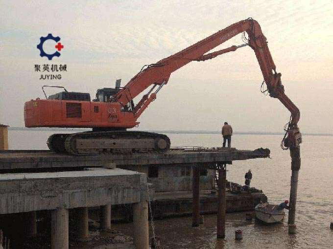 挖掘机打桩施工就是利用不同类型的打桩机具与挖掘机安装组合,可以适合各种不同工作现场的全部需要。不同种类,只需更换夹头,即能满足用户的施工需求。各种材料的桩打入、压入、振入或旋入地基土中有的施工方法也存在差异,常用的有锤击法、振动法、射水法和压桩法等。